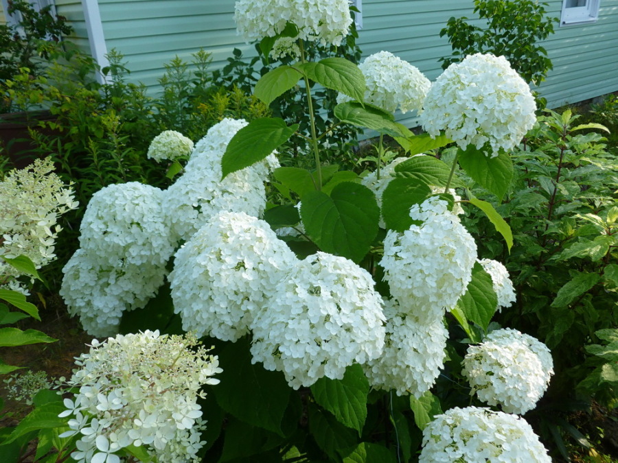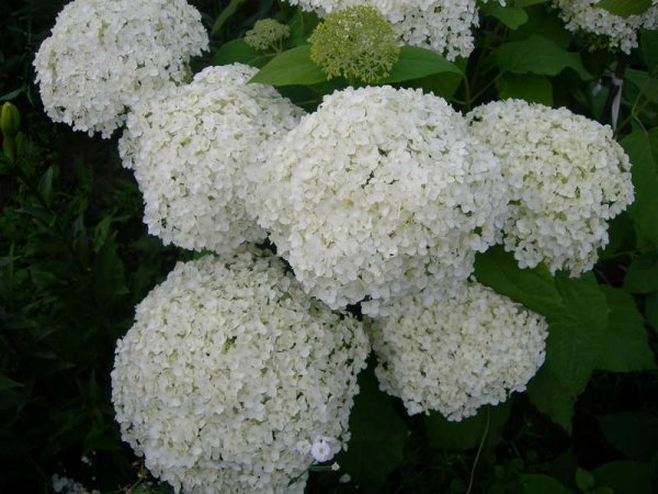 АННАБЕЛЬ (ANNABELLE) – имеет округлые, чисто белые соцветия с цветочками, которые плотно прилегают друг к другу, образуя плотный купол. Если при весенней обрезке оставить меньше почек, из которых развиваются побеги с цветами, то соцветия будут крупнее. И наоборот.