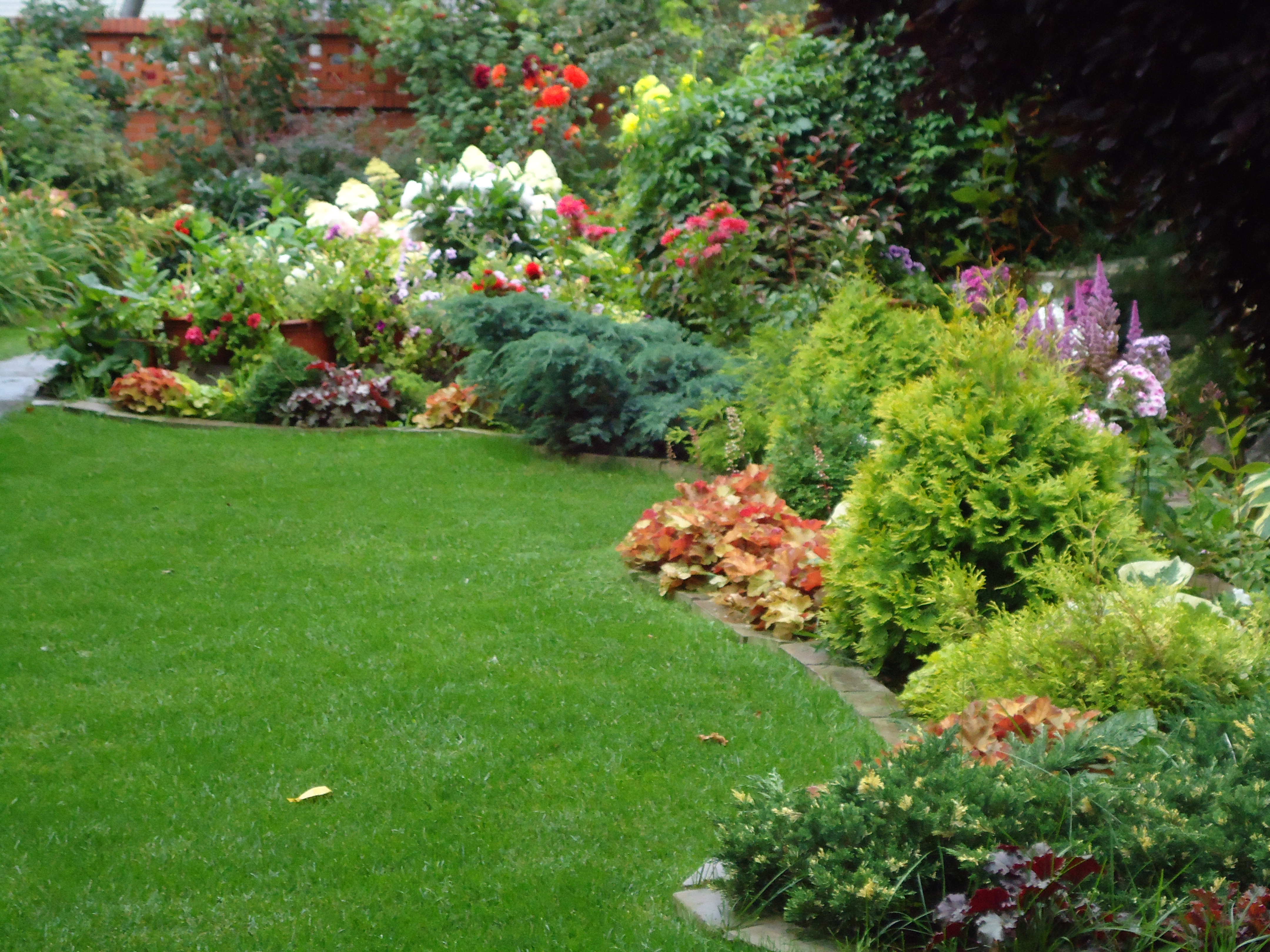 Последний день сентября. Пасмурно и дождливо в саду, но на окне светится разноцветный букет чайно-гибридных роз, и поэтому совсем не грустно. Казалось, лето нынче не закончится, но, увы, чудес не бывает и сегодня за окном осень. Еще во всей красе багровый наряд винограда девичьего, но желтые листья берез, медленно кружась, слетают вниз, всё более оголяя крону. Даже самые нерадивые или занятые садоводы подготовились к зиме основательно и неспешно, и наступает время, возможно, самое важное, но уже для сада будущего года. Мы вспоминаем лето, перед глазами всплывают картины сада в разное время, а фотографии бесстрастно зафиксировали как удачи, так и явные ошибки. (Посмотреть фотоальбом) Хочется немедленно все исправить, и многое, конечно, уже переделали, пересадили старые и купили новые растения. Но все равно терзают сомнения, правильно ли, будет ли сад красивее и удобнее для всех.