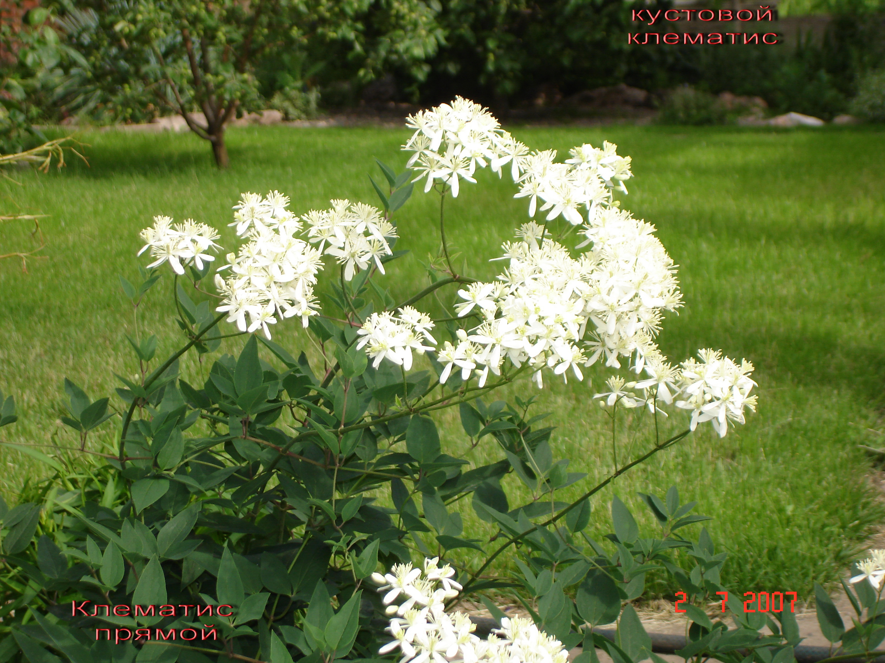 <u>Клематис прямой</u> – травянистый многолетник (до 1,5 м высотой, цветки до 3 см в диаметре, собраны в многоцветковые соцветия. Побеги на зиму отмирают и их обрезают.