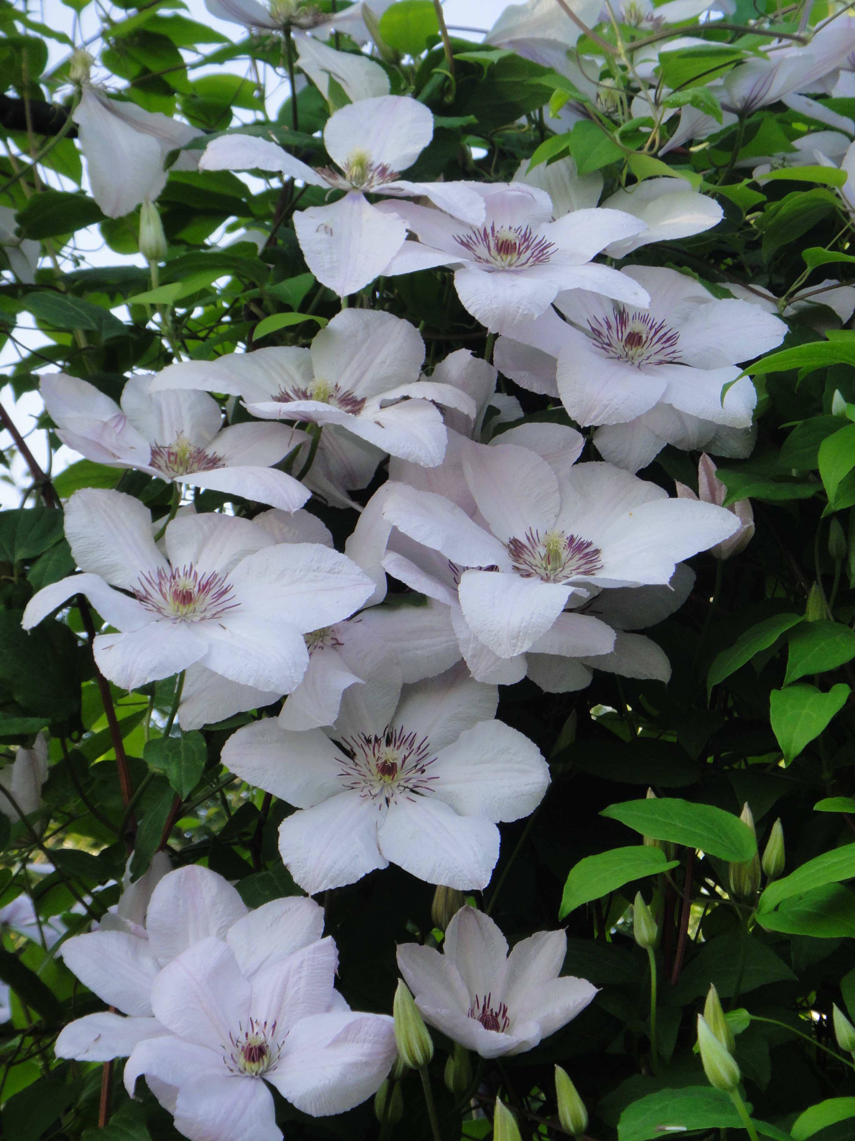 Как сохранить зимой клематисы, надо подумать ещё в магазине при покупке и при посадке саженца в грунт. Все клематисы, как цветущие на побегах прошлого, так и текущего года, надо тщательно укрывать не только от морозов, но и от излишнего увлажнения. Осенью крону клематисов следует обрезать, оставив побеги длиной 10-15 см для сортов, цветущих на побегах текущего года, и 100-120 см для сортов, цветущих на побегах прошлого года. Укороченные побеги прошлого года надо сохранить так, чтобы почки остались жизнеспособными, но это чрезвычайно трудно из-за долгой зимы. Поэтому предпочтительнее покупать сорта, цветущие на побегах текущего года. Далее засыпать зону корней сухими листьями и укрыть от дождей и снега пленкой. Плёнку необходимо снять весной, как только почва начнёт оттаивать. Листья разрыхлить, но убрать их можно только тогда, когда почки тронутся в рост.